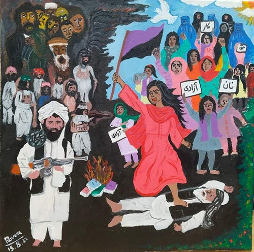 ماههای نخست تسلط طالبان بر افغانستان و تسلیمدهی سازمانیافتهی حکومت افغانستان به این گروه تروریستی از سوی حکومت آمریکا و حکومتهاي دخیل در پروسهی طالب، همراه با یک عملکرد غیرمنتظره و شجاعانهی زنان افغانستان بود. زنان افغانستان در کابل و ولایات افغانستان به صورت گروههای خودسازماندهی شده و آنارشیستی دست به اعتراض علیه دستگاه طالب زدند، تا جاییکه توانستند این گروه را در میدان سیاست و رسانهها به چالش بکشند. هرچند طالبان در نخست ظاهراً با اندک مدارا با این شورشهاي مردمی برخورد کردند، اما خیلی زود چهرهی واقعی شانرا با ترور، بازداشت و سرکوب خفقانآور نمایان ساختند. چنانچه اکثرا معترضان و فعالان ضد طالبی مجبور به ترک کشور شدند و تعداد باقی مانده در افغانستان محکوم و مجبور به سرکوب و خاموشی گردیدند.